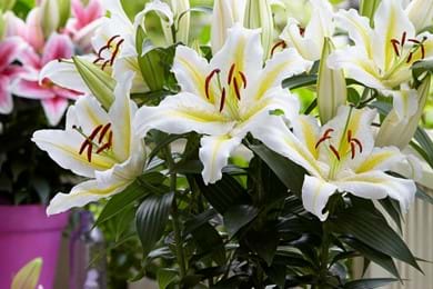 Lilies require cool night in order to flower. During this stage be especially careful that the pots never dry out. Pots should ideally be shipped when the first flower is showing color.