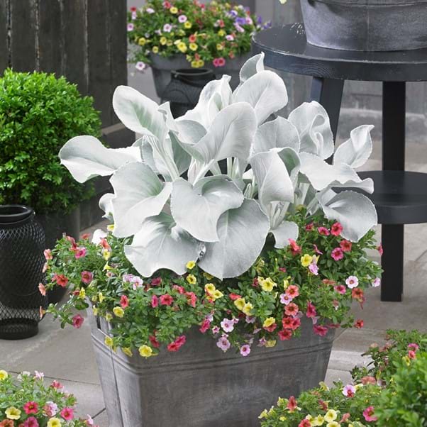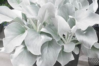 Angel Wings has silky, silvery white foliage and is a perfect plant for indoors as well as outdoors. Works well for mixed containers or as a solitary on patio or balcony. This medium habit plant grows to 10-12” tall and 10” wide. Plant Angel Wings in the sun in an acidic, neutral or alkaline soil. This fast growing Senecio is drought tolerant. Zone 8-11.